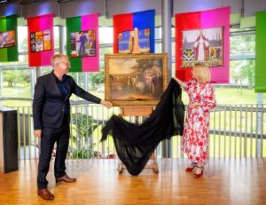 Madeleine van Toorenburg, de nieuwe gedeputeerde van cultuur, onthulde afgelopen dinsdag samen met directeur Bert Mennings het eerste werk dat in de tentoonstelling wordt opgenomen, waarop de Zonnekoning wordt afgebeeld tijdens het beleg van Maastricht in 1673, geschilderd door Adam Frans van der Meulen.
